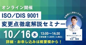 ISO9001:2026の新しい要求事項や変更点を解説するセミナーを実施しています。